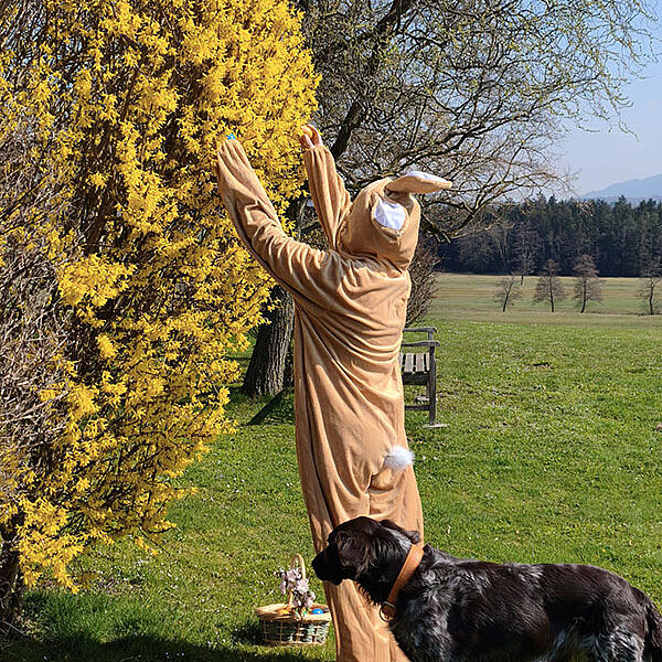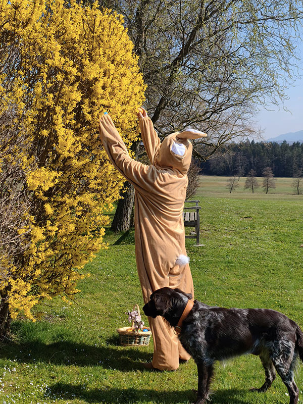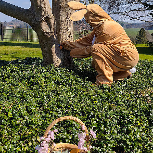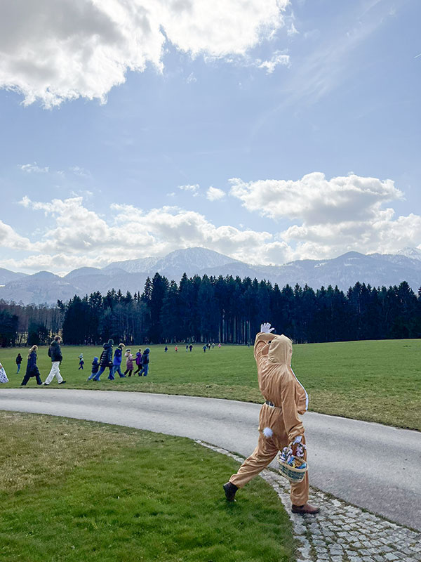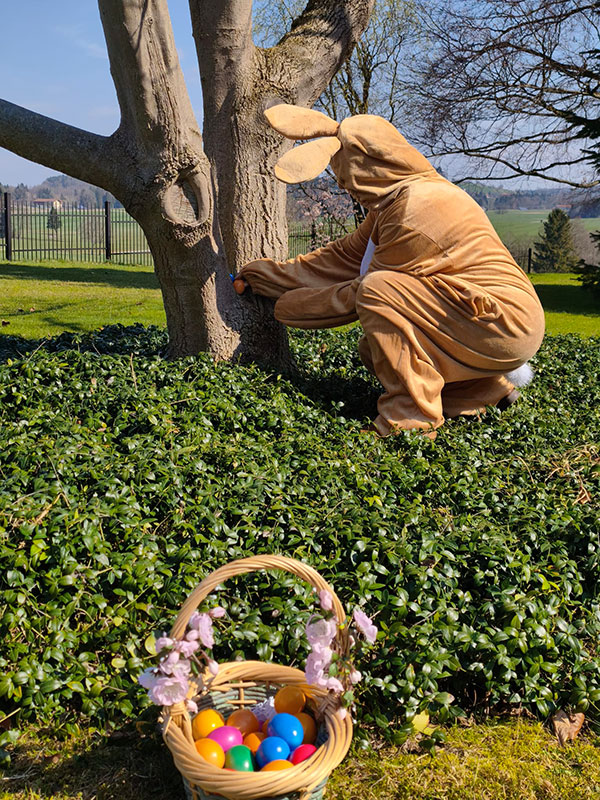 Der Osterhase war auch vor Ort und erfreute mehr als 60 Kinder mit Osternestern, welche die Kinder im angrenzenden Wald selber suchen mussten.